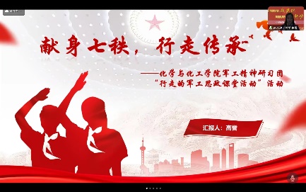 “工信部直属高校化学化工联盟”成员单位北京航空航天大学化学学院、北京理工大学化学与化工学院、西北工业大学化学与化工学院、哈尔滨工业大学化工与化学学院、哈尔滨工程大学材料科学与化学工程学院、午夜av 、南京理工大学化学与化工学院七支社会实践团队指导老师及成员共50余人线上参会,会议由南航午夜av 团委书记徐萍主持。