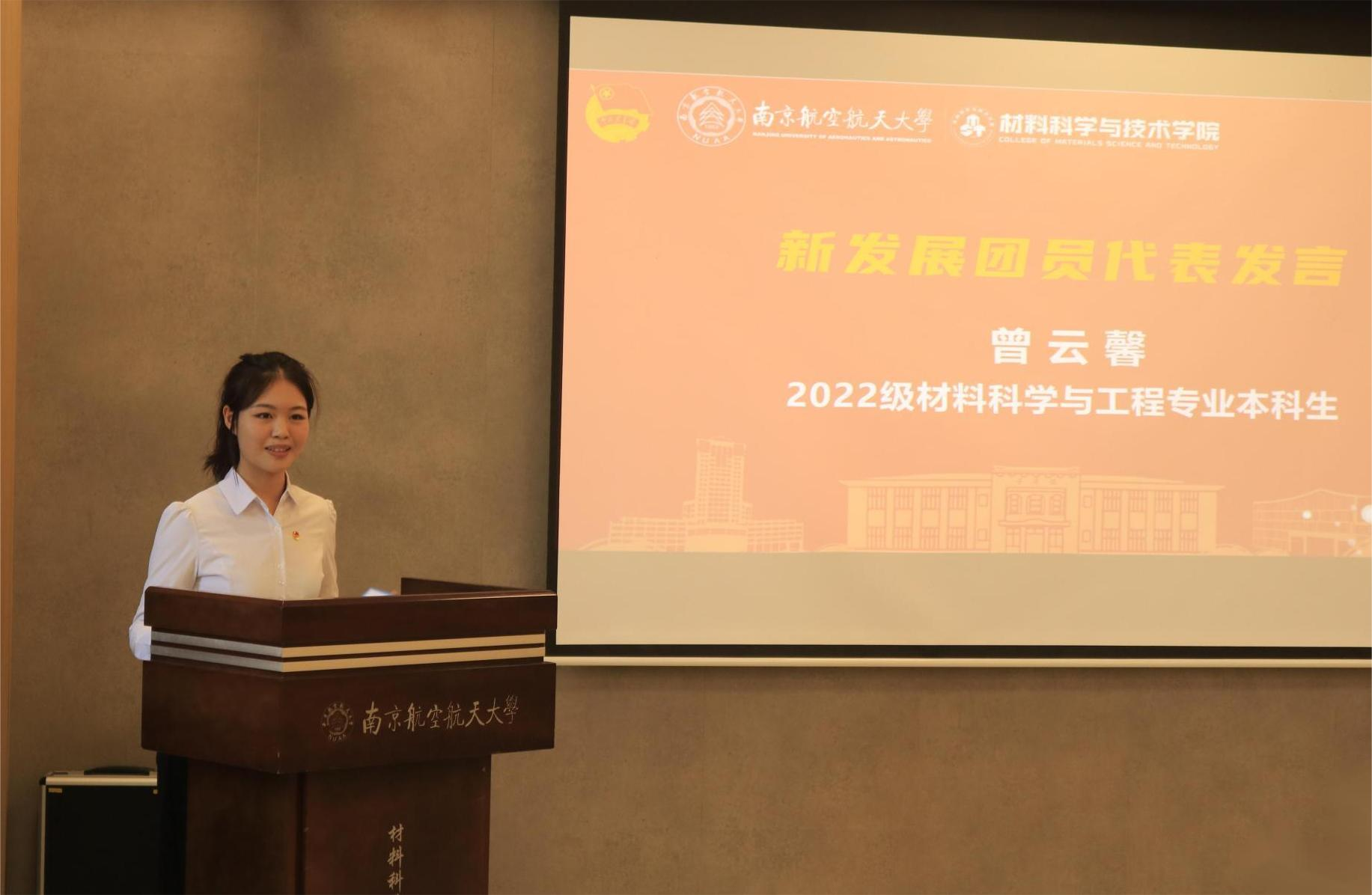 新发展团员代表曾云馨表达了作为一名新团员的奋斗决心,将努力对照“五个模范、五个带头”的总要求,充分发挥团员模范带头作用,坚定不移听党话、跟党走,以理想者、担当者、吃苦者、奋斗者的姿态,诠释新青春、奋进新征程。