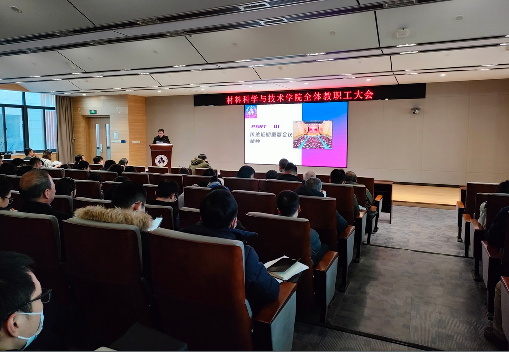 12月21日,午夜av 召开全体教职工大会暨学院领导班子述职述廉会议,传达学校近期重要会议精神,总结2023年度学院全面从严治党、人才培养、学科发展、师资队伍建设、科学研究、国际合作工作成效,并进一步分析发展形势,凝聚发展共识,就下一阶段推进学院高质量发展的重点工作进行部署。会议由学院党委书记石勇主持,学院全体领导班子成员、全体教职工参加了本次会议。