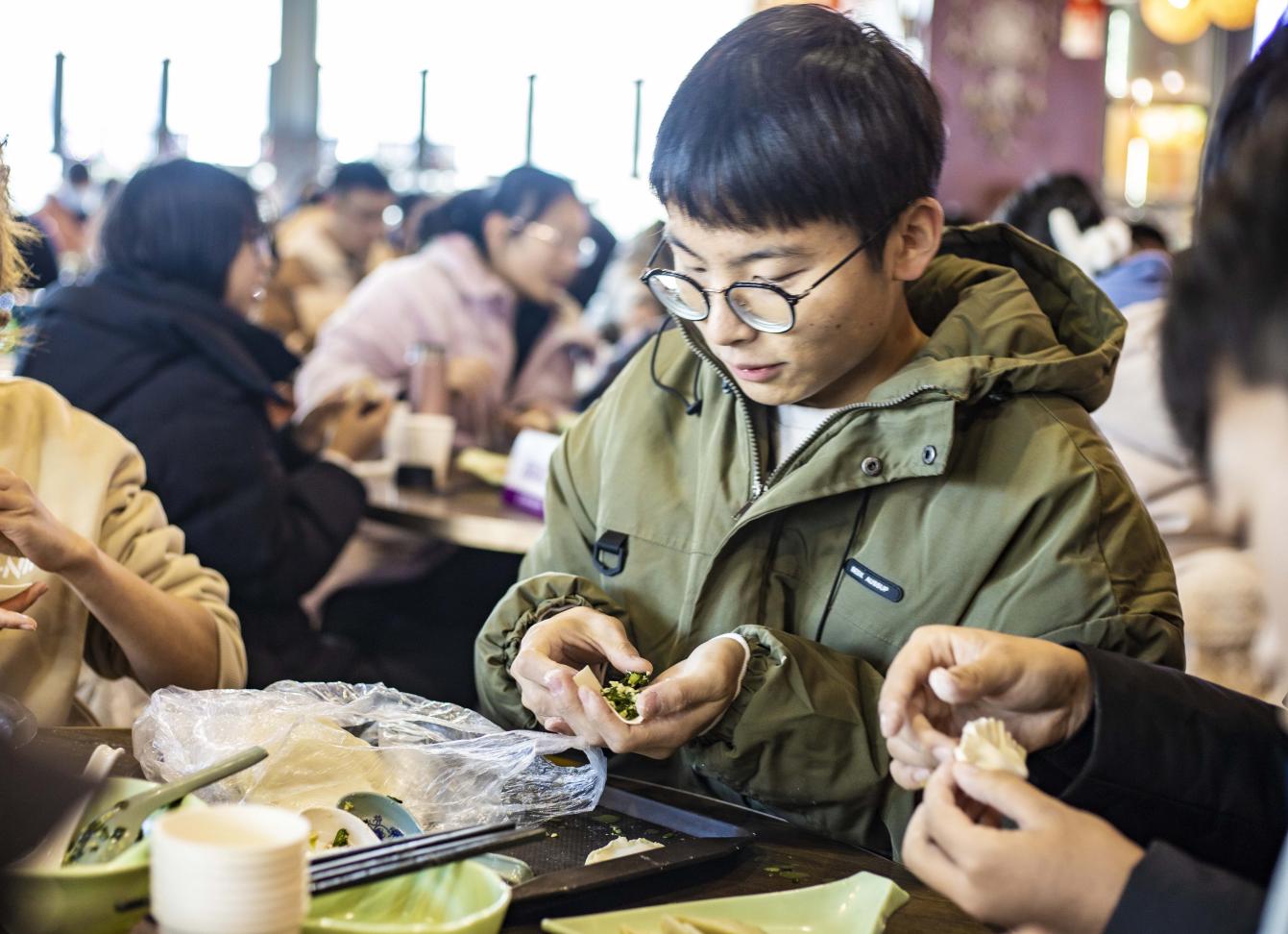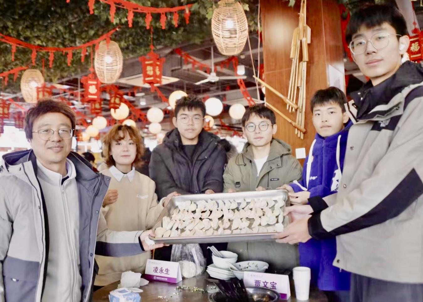 院领导、班主任和同学们边学包边交流,在欢乐的气氛中询问同学们的日常生活,关心近期的期末复习,叮嘱天寒多加衣……不一会儿,白白胖胖的饺子就包好了,大家包的饺子,有的造型独特,有的圆润饱满,这是全体师生共同努力、团结协作的劳动成果,也是师生欢聚一堂的见证。