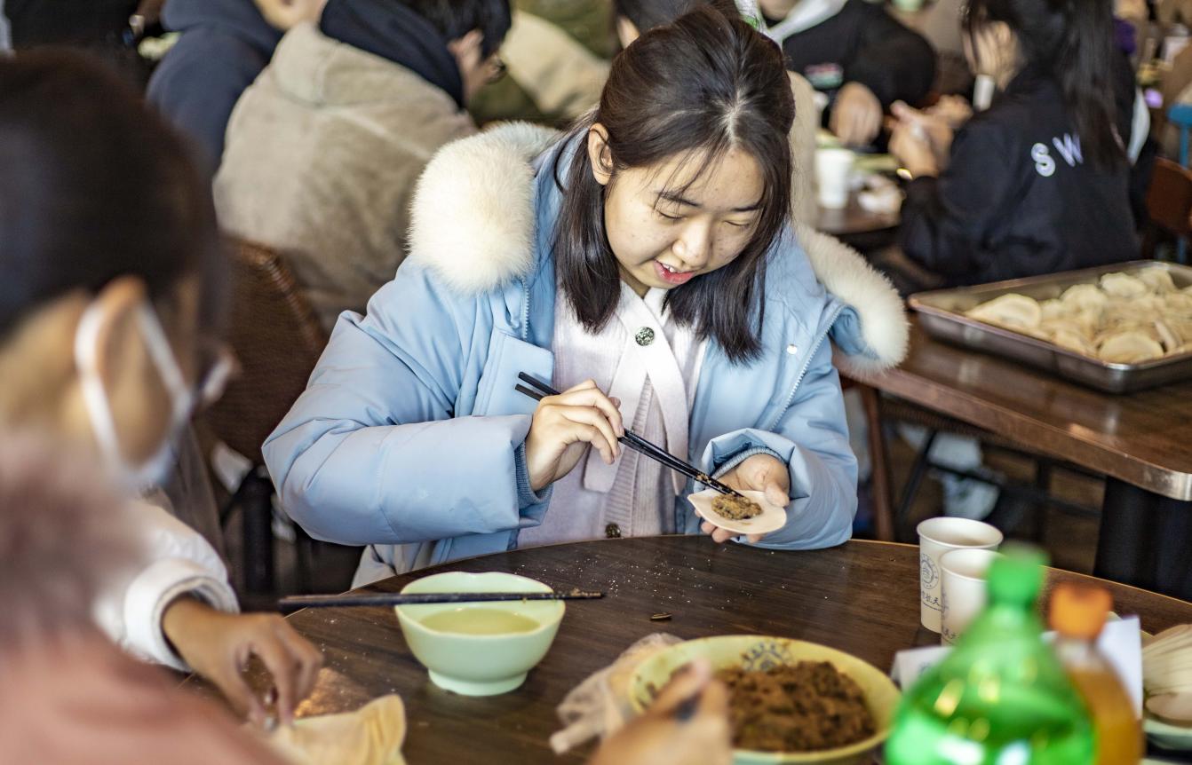 在温馨欢乐的气氛中,热气腾腾的饺子出锅了!温情冬至,饺香四溢,散发着“家”的味道。师生们吃着自己包的饺子,感受到了劳动的快乐和集体的温暖。