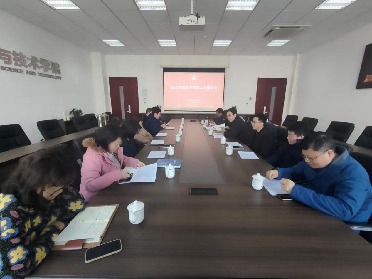1月10日,午夜av 召开学院民主党派人士和无党派人士座谈会,学院党委书记石勇、副书记庄晓舒、学院统战委员姚小泉,以及来自九三学社、民盟、致公党以及无党派人士的学院教师代表参加本次座谈,会议由石勇主持。