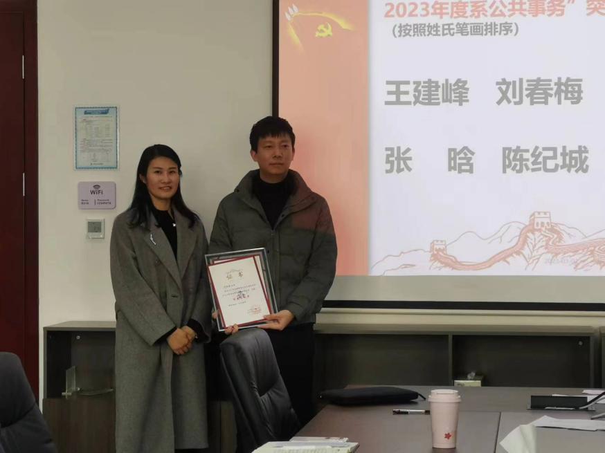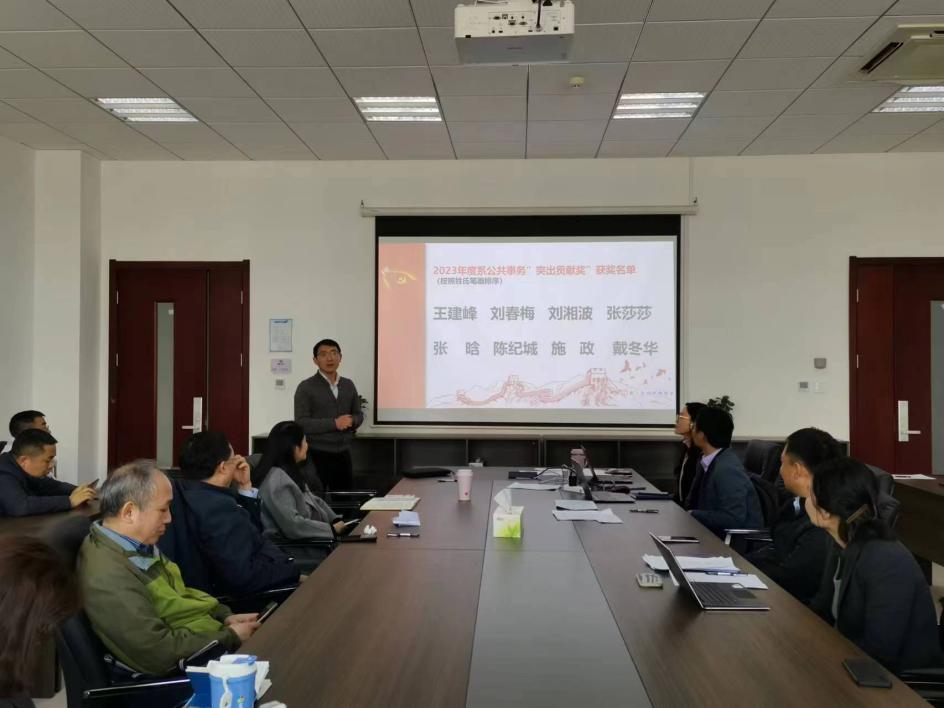 为了表彰青年教师为系部2023年的教学、学科、实验室及招生等公共事务做出的贡献,由林开杰主任宣布“突出贡献奖”名单,并由参会院领导为获奖老师颁奖。旨在鼓励更多的青年教师参与到系务工作中,推动学院和系高质量发展。