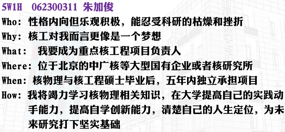 为深化参观学习效果,2023级核工程类分班开展小组研讨,谈体会,话收获,强动能,促学风。同学们交流实习感悟并结合讲座内容和“5W1H”法对自己未来规划进行了交流讨论。