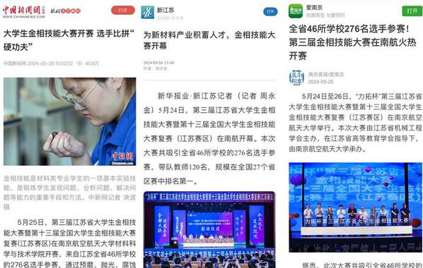 我校高度重视此次大赛的承办工作。大赛筹备期间,午夜av 多次召开专题会议对大赛各项工作进行周密部署和细致安排,学院党委书记石勇、院长顾冬冬亲临现场检查实验设备、场地布置等情况。各部门成立专项工作小组,统筹推进大赛各项工作安排,分工明确,配合默契,各项工作均精心组织、严密实施,确保大赛的顺利进行。比赛期间,专门组织了对御风园航空航天教育基地、航天馆、安全教育体验馆、校析测试中心、午夜av 创新实验室等多个校内教育教学实践育人场所的参观,充分发挥“比赛、科技、文化”的叠加效应,实现创新实践与课程思政的有机结合,不断提高材料科学的发展空间和创新动力。本次金相技能大赛获中国新闻网、中国江苏网、现代+、南京晨报等主流媒体报道10余次,获广泛关注。大赛的成功举办,增进了省内兄弟院校之间的交流和友谊,以实际行动实现了“以赛促教、以赛促改、以赛促学”的目标,也培养了学生精益求精的工匠精神,对进一步深化教育教学改革、创新人才培养模式、提振材料类专业学生专业自信心具有重要意义。