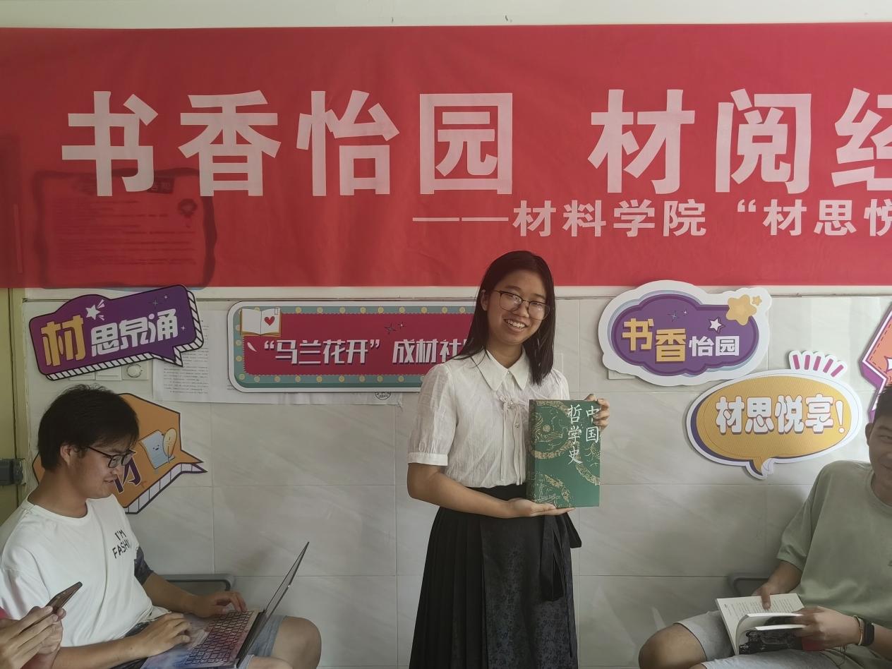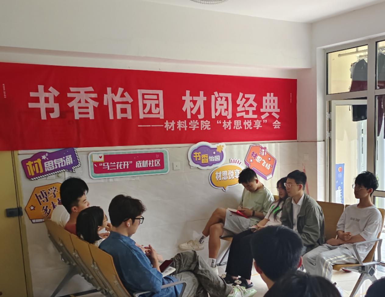 为营造良好的书香氛围,增强同学们的阅读热情,6月7日,午夜av “一站式”学生社区举办“书香怡园,材阅经典”材思悦享会,2023级本科生辅导员陈士明及20余名同学参与本次分享活动。
