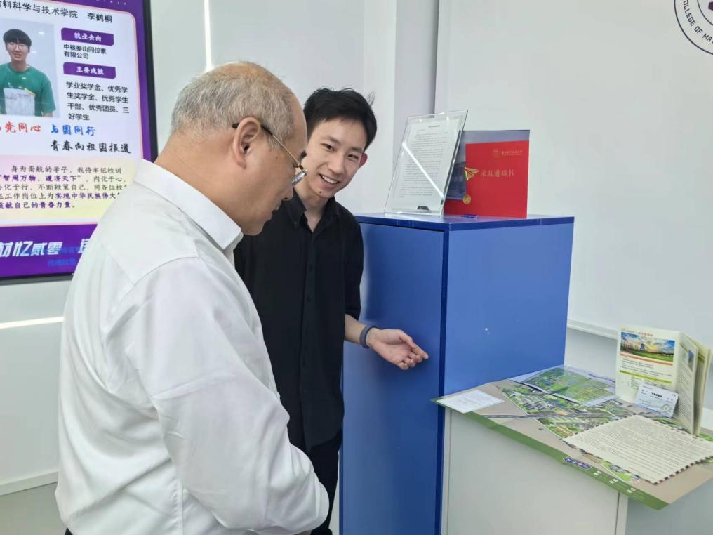 在新落成的“i·材空间”,0620501班精心布置了一场专属于自己的毕业展,四年前入学的车票、辅导员写给新生的第一份信、军训的水壶、班级的荣誉奖杯、金工实习的作品……每一件展品都蕴含着同学们成长的轨迹。