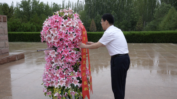 为缅怀先烈,调研团前往马兰烈士陵园为全体马兰英烈敬献鲜花,并在著名科学家、我校陈达院士墓前深切悼念,回顾陈达院士在基地和南航为我国教育科技人才事业无私奉献的一生,表达追思之情。