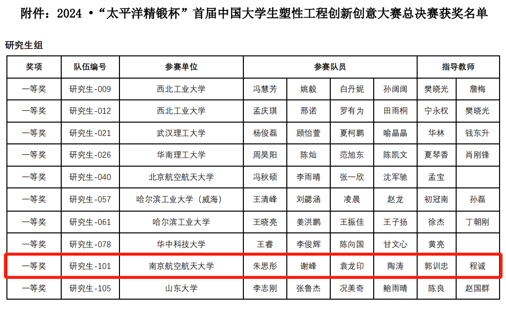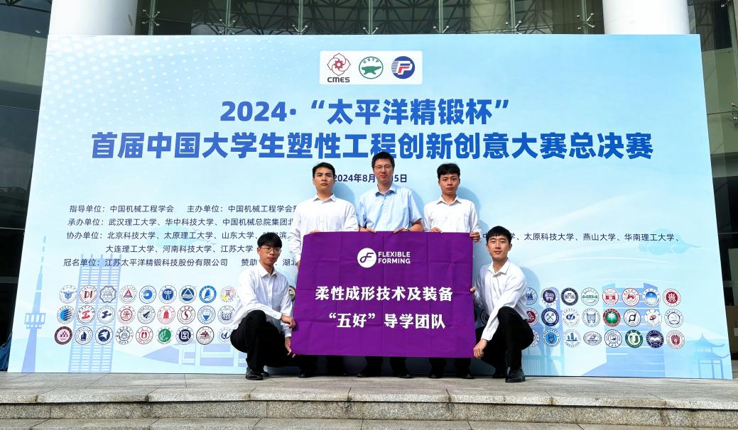 2024年8月14日-15日,2024·“太平洋精锻杯”首届中国大学生塑性工程创新创意大赛总决赛圆满落幕,午夜av 柔性成形技术与装备团队于120支晋级总决赛队伍中脱颖而出,荣获首届中国大学生塑性工程创新创意大赛一等奖。