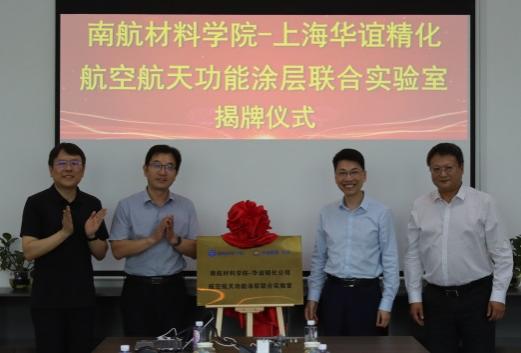 揭牌签约环节,顾院长与上海华谊精细总经理陈波共同签署了战略合作协议。石勇与孙喆浩共同为联合实验室揭牌。“航空航天功能涂层联合实验室”正式揭牌,标志着双方合作迈入了一个崭新的阶段。