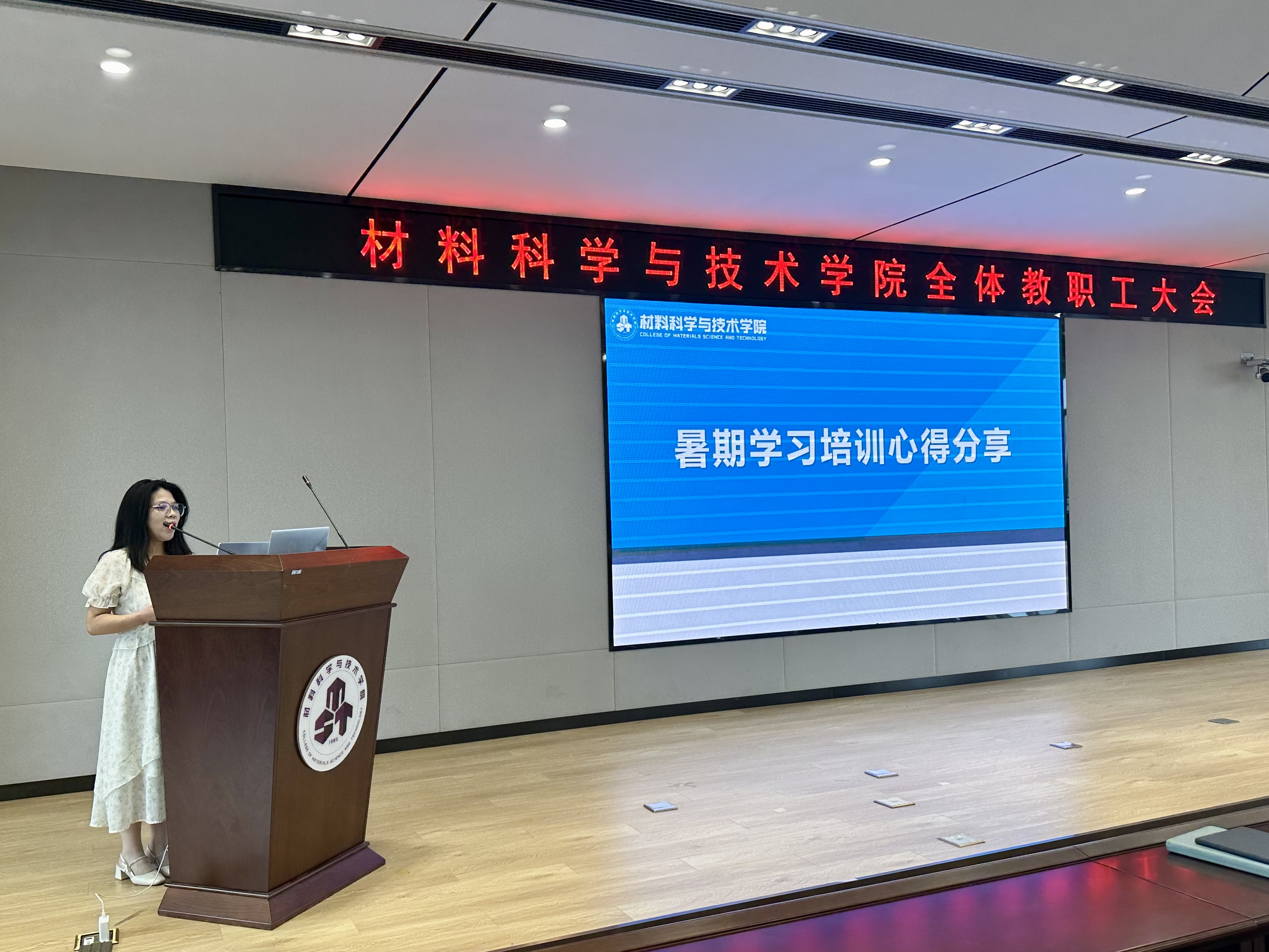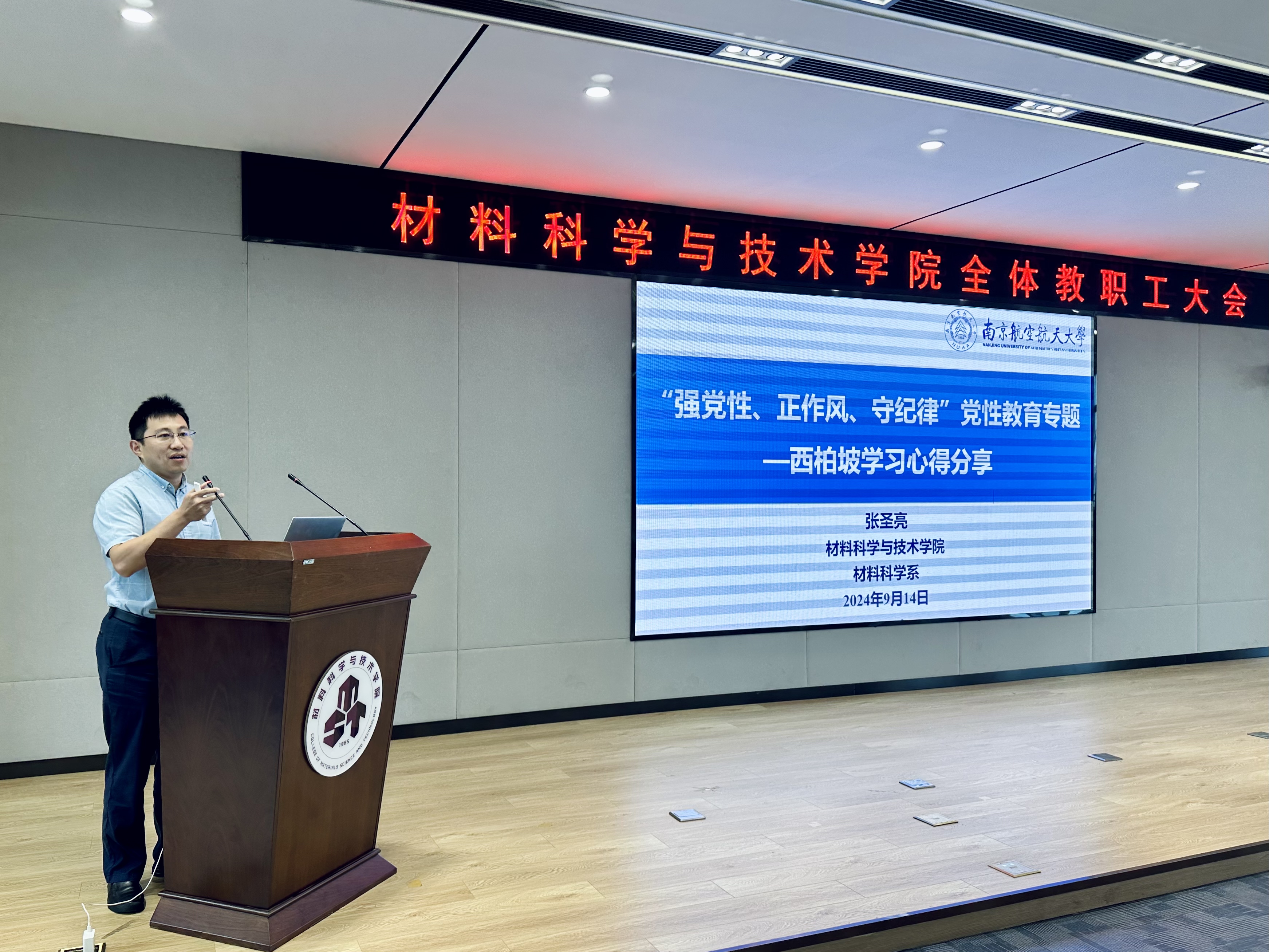 学院邀请教师代表张圣亮、佟浩、王磊磊、李静静四位教师,分享了暑期中参加学校“强党性 正作风 守纪律”党性教育专题培训班(西柏坡)、南航教师暑期学校第六期(邹城)、学院党性教育专题培训班(遵义)的学习心得体会。