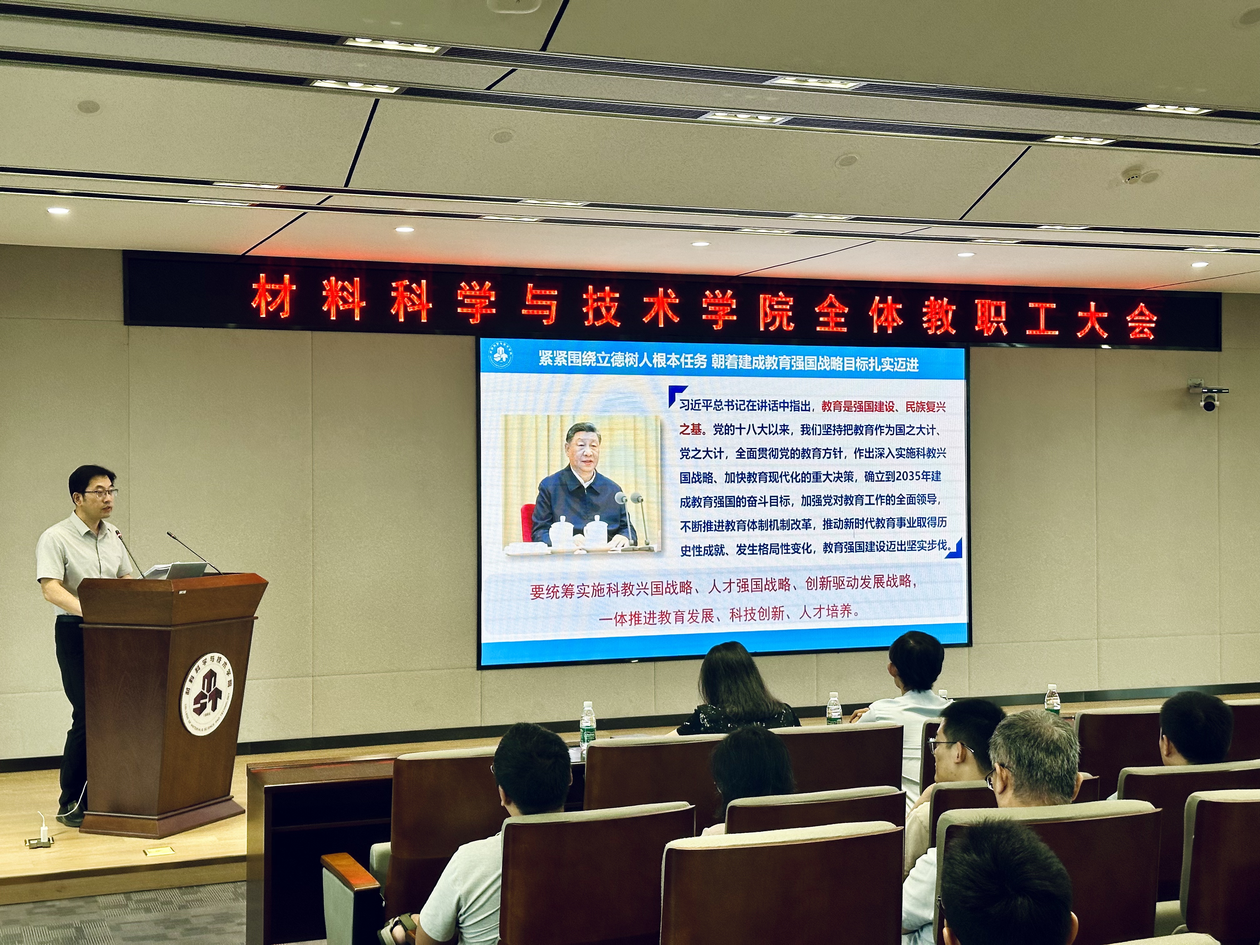 9月14日,我院召开全体教职工大会,学习习近平总书记在全国教育大会上的重要讲话精神,2024年下半年干部教师大会会议精神,分享交流暑期培训心得体会,并对学院下半年重点工作进行部署。会议由学院党委书记石勇主持,学院全体领导班子成员、全体教职工参加了本次会议。