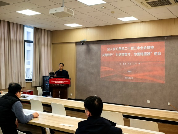 2024年12月13日,材料科学系党支部和研究生M-best电化学储能党支部开展联合学习二十届三中全会精神活动。支部书记刘劲松分享了12月11日参观江苏省党风廉政教育基地的感想与体会。常树全副院长以“深入学习贯彻二十届三中全会精神,认真践行为党育英才、为国铸重器使命”为题讲述党课。从深化教育综合改革、深化科技体制改革、深化人才发展体制机制改革等方面进行了详细解读和阐述。张圣亮主任结合学习汇报了近期系里的重点工作。
