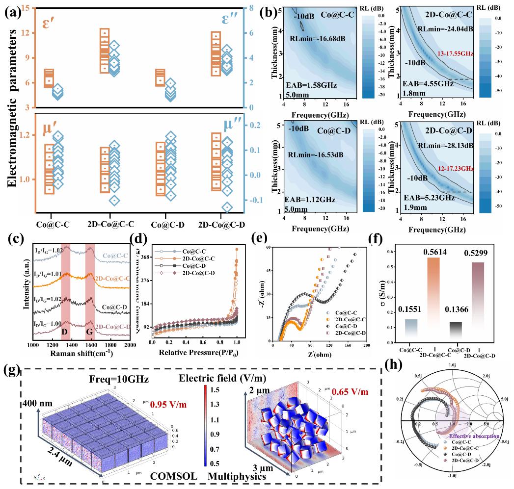 总之团队通过构建二维有序阵列,连接了不同尺度的机制与调制行为。纳米功能单元在自组装成二维有序阵列后表现出独特的介电敏感行为。改进的二维有序多面体超结构不仅继承了原子级掺杂和精心设计的壳结构,还进一步放大了损耗特性,实现了多尺度调制的吸波响应。作者们提出二维有序阵列诱导的多尺度极化行为,为充分利用吸波单元的潜力提供了新的方向。