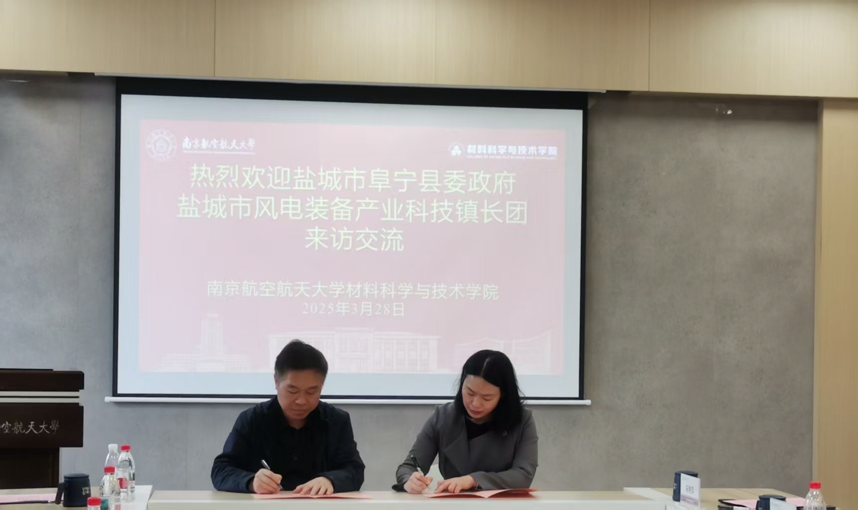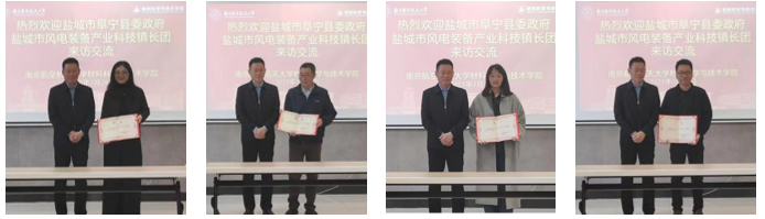 蒋全胜对学校的热情接待表示感谢,他指出,近年来,阜宁在产业发展、人才引育等方面取得了显著成效,为各类人才提供了施展才华、创新创业的广阔天地。期待以此次座谈为契机,进一步深化校地、校企合作,吸引更多南航学子到阜宁创新创业。阜宁县委组织部常务副部长裴承坚介绍了阜宁当地风电、光伏、石油、机械等龙头产业的发展情况,阜宁县科技局陈玉林解读了阜宁人才政策和科技政策。