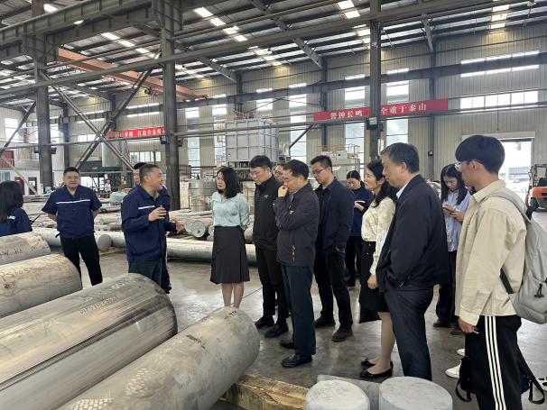 在江苏豪然的调研学习中,豪然团队带领师生参观了企业生产车间,详细介绍了喷射成形工艺及库房各类展成品的形成及性能,在实景中生动讲述了江苏豪然成立以来始终将创新精神付诸实践,紧跟市场需求变化、专注高性能合金研发生产的发展历程。