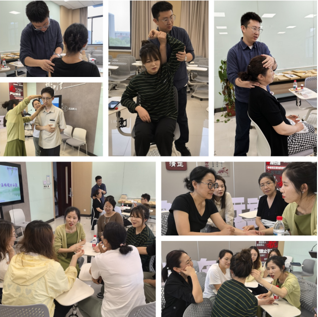 为让教职工感受中医文化,活动设置中医体质辨识和推拿体验环节。在体质辨识区,宋老师通过“望闻问切”,为教职工进行个性化体质测评,并根据个人体质给出养生建议。在推拿体验区,胡骏老师现场示范常用经络按摩手法,教职工亲身体验中医推拿效果,感受“治未病”理念。