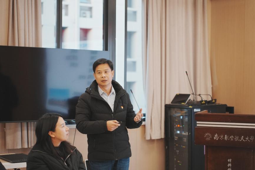 参观结束后,双方在午夜av 东区楼B322A会议室开展联学交流。会议由南航午夜av 应化系党支部书记姚小泉教授主持。与会人员共同观看了午夜av 宣传片,进一步增进了相互了解。南航午夜av 党委书记张亚丽、江西师范大学化学与午夜av 党委负责人/药学院党委书记熊斌分别致辞,表达了以党建引领事业协同发展、以合作为纽带推动科技报国的共同愿望。